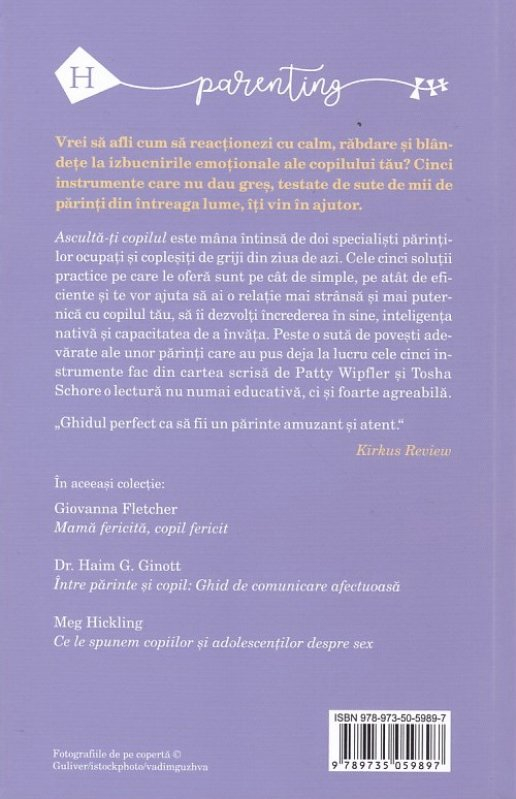 Asculta-ti copilul este mana intinsa de doi specialisti parintilor ocupati si coplesiti de griji din ziua de azi. Cele cinci solutii practice pe care le ofera sunt pe cat de simple, pe atat de eficiente si te vor ajuta sa ai o relatie mai stransa si mai puternica cu copilul tau, sa ii dezvolti increderea in sine, inteligenta nativa si capacitatea de a invata. Peste o suta de povesti adevarate ale unor parinti care au pus deja la lucru cele cinci instrumente fac din cartea scrisa de Patty Wipfler si Tosha Schore o lectura nu numai educativa, ci si foarte agreabila.