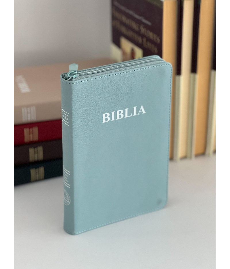 Biblie medie, piele ecologică, cu fermoar, margini aurii, index, cuvintele Domnului Isus în roșu