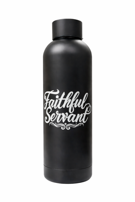 Această sticlă termos din oțel inoxidabil este un accesoriu esențial pentru oricine. Iată un mod de a-ți potoli atât setea (vara sau iarna), cât și încânta sufletul aducându-ți mereu aminte de promisiunile Cuvântului lui Dumnezeu!