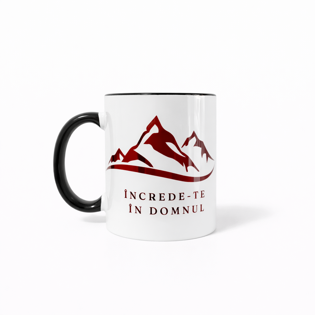 Cana din ceramica pe care este imprimat: Increde-te in Domnul!