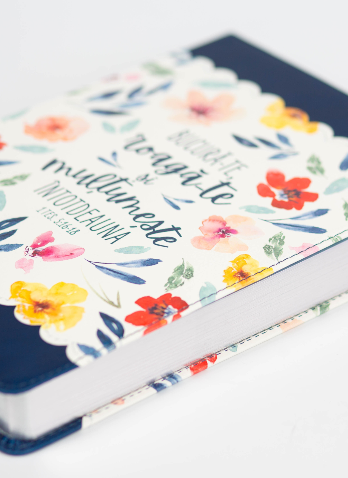 Jurnalul include versete biblice la baza fiecărei pagini, iar hârtia de înaltă calitate previne trecerea cernelei pe verso. De asemenea, semnul de carte din satin îți permite să găsești rapid pagina dorită.