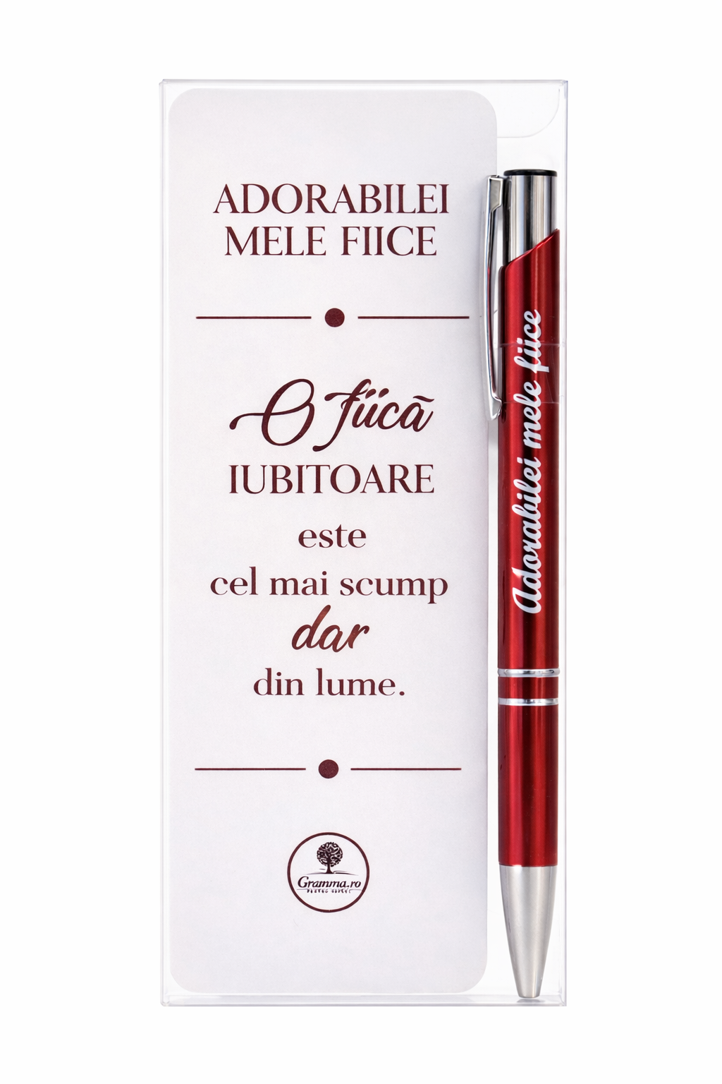- pix de aluminiu lacuit - personalizat (pixul are mina tip parker). Pixul denota calitate si apare ca fiind un produs din gama premium. Dimensiune pix: 11 x 138 mm