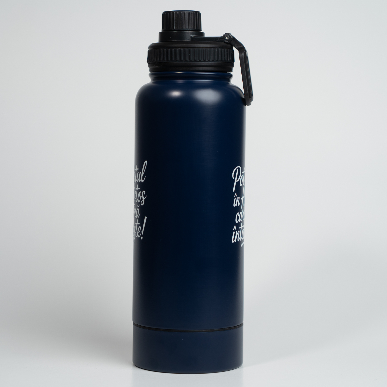 Sticla este concepută pentru cei care apreciază calitatea, designul elegant și confortul în utilizare. Realizată din oțel inoxidabil de înaltă calitate, această sticlă păstrează băuturile la temperatura dorită pentru ore întregi – fie că este vorba de o cafea fierbinte sau de o băutură rece.