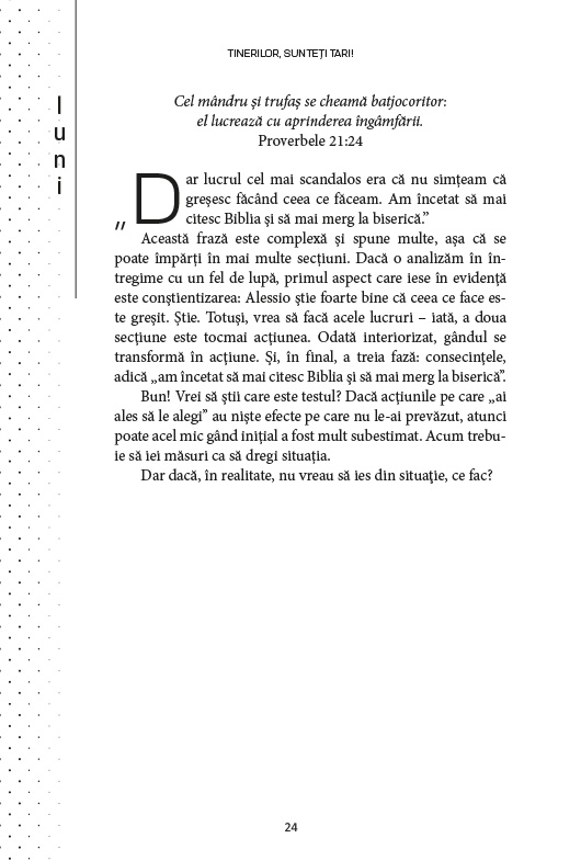 Pregătiți-vă pentru o invitație la meditație, adunată în cartea Tinerilor, sunteți tari!, care se adresează în special tinerilor, dar care va fi apreciată și de către adulți. Titlul se inspiră dintr-un verset biblic care arată că tinerii sunt deja tari în credință.