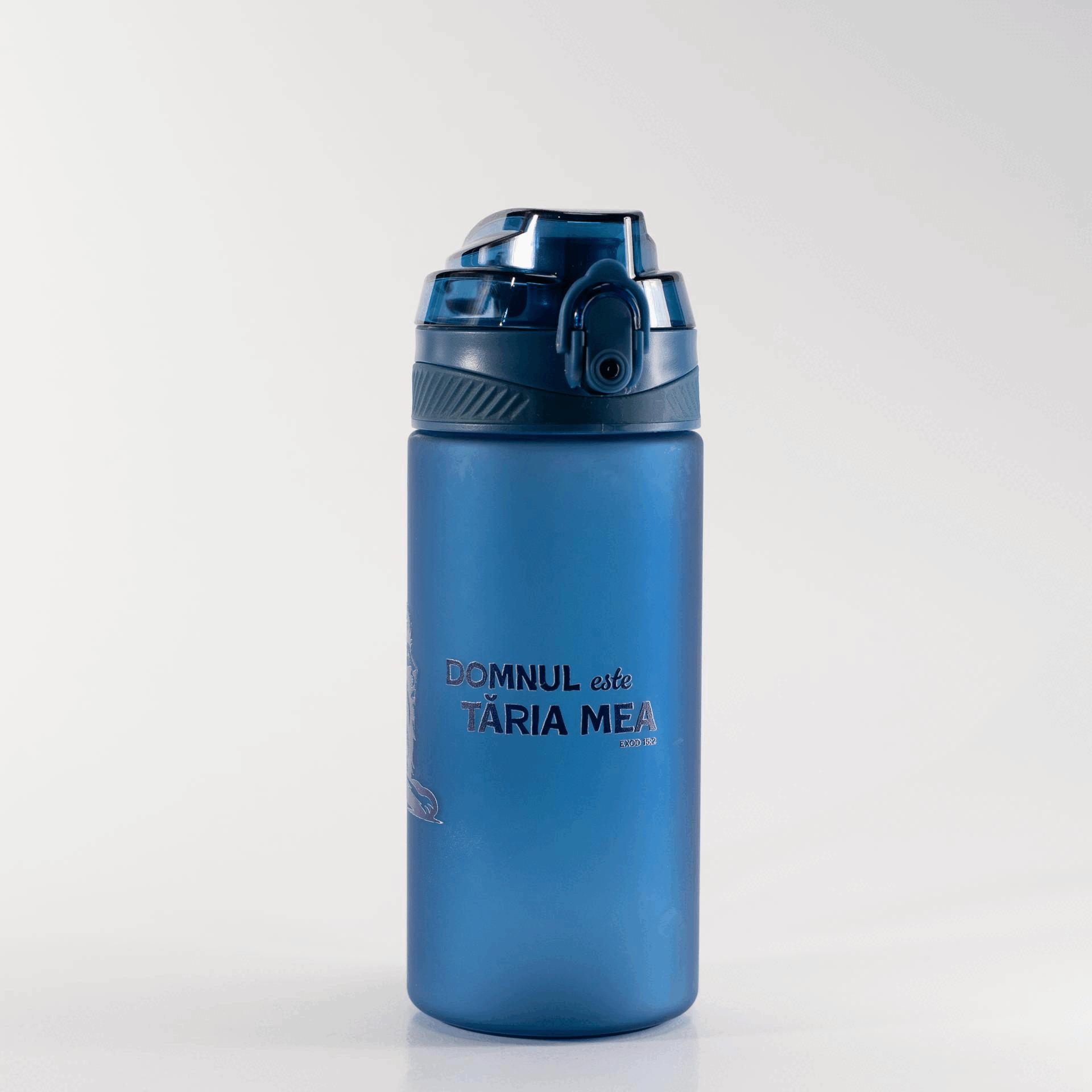 Sticlă de apă din tritan, culoarea albastru Navy cu mesajul: Domnul este tăria mea