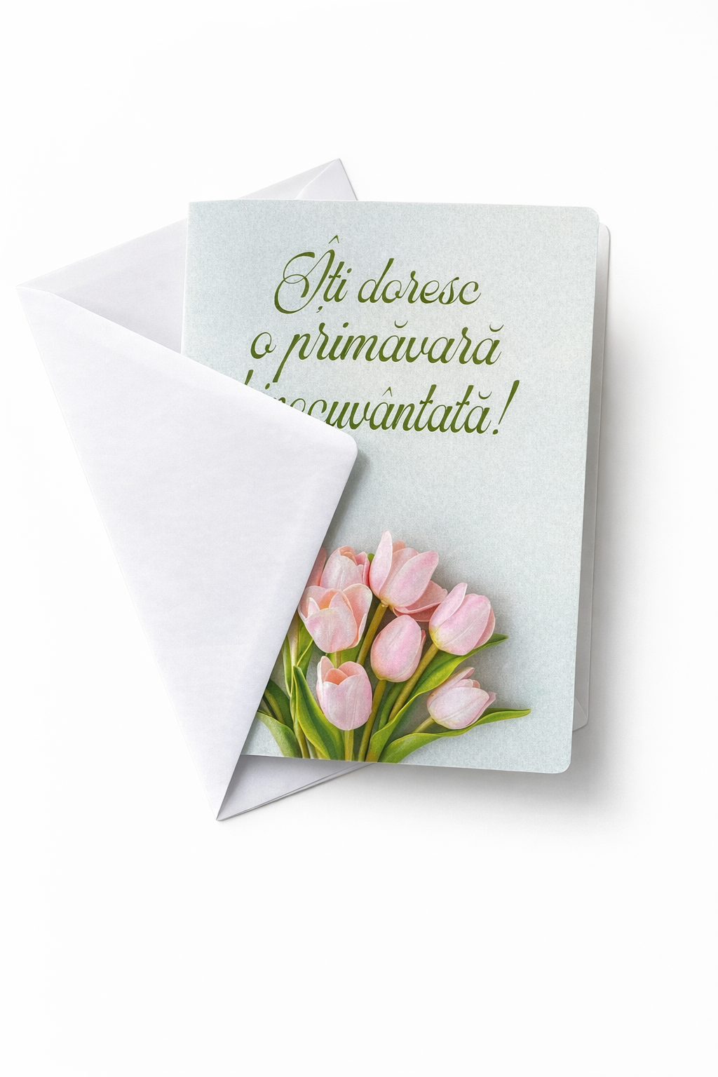 Felicitarea vine insotita de plic alb si folie din plastic.