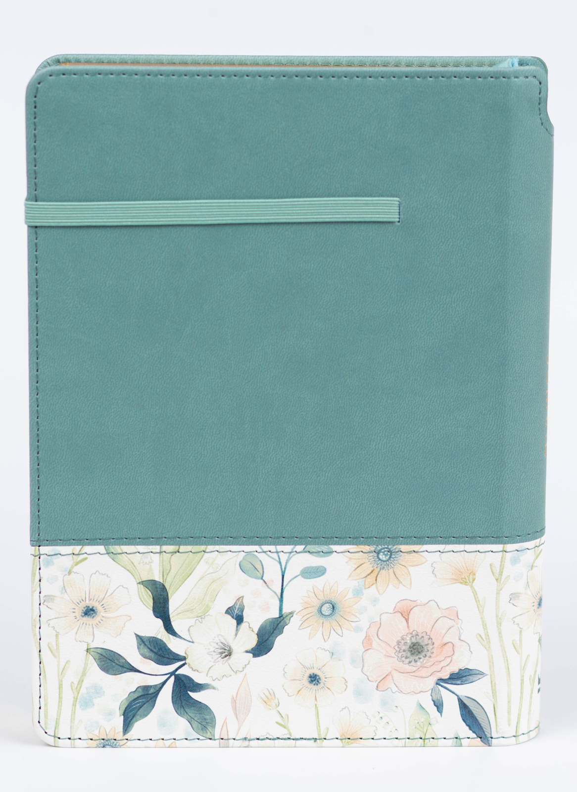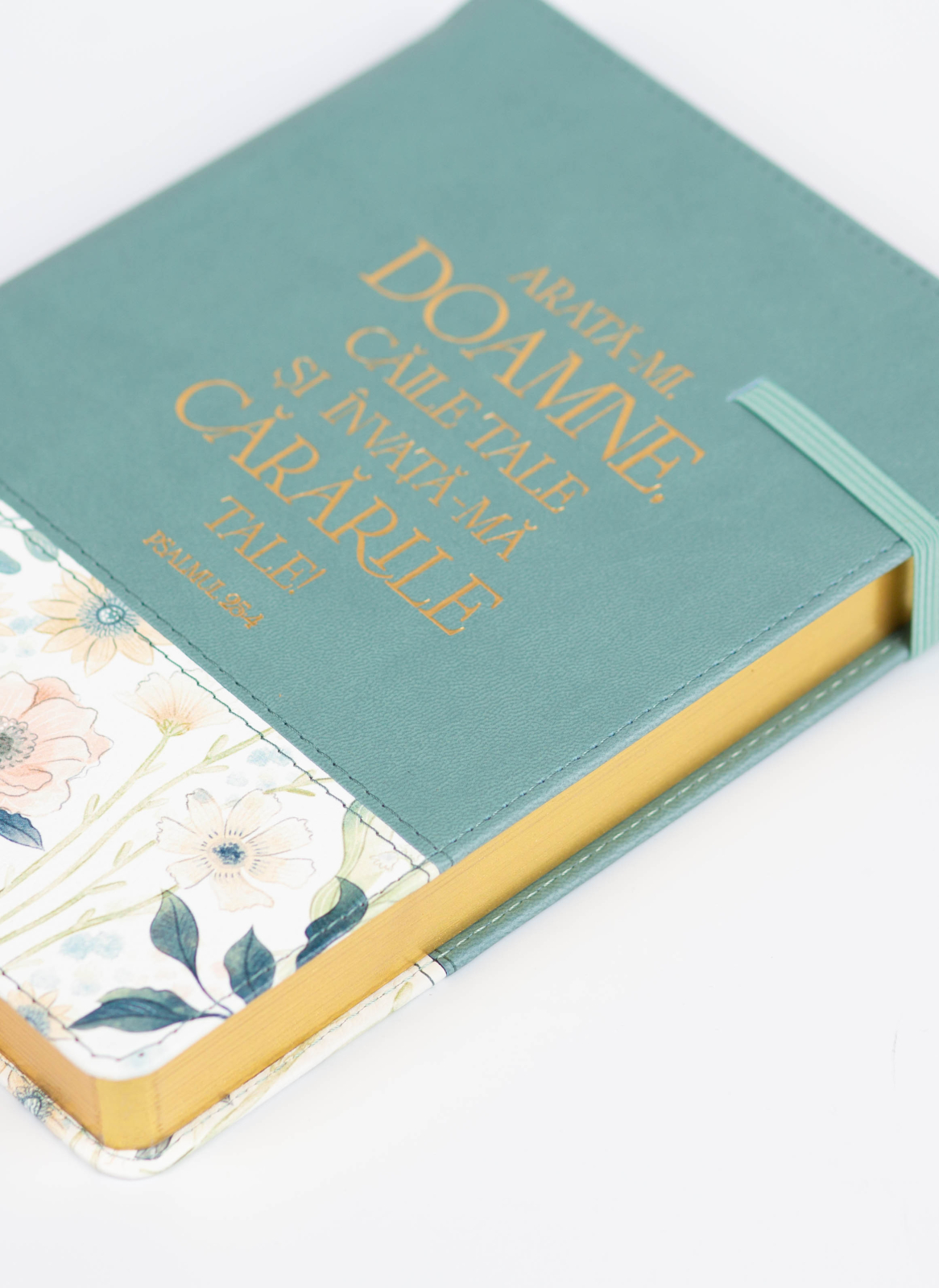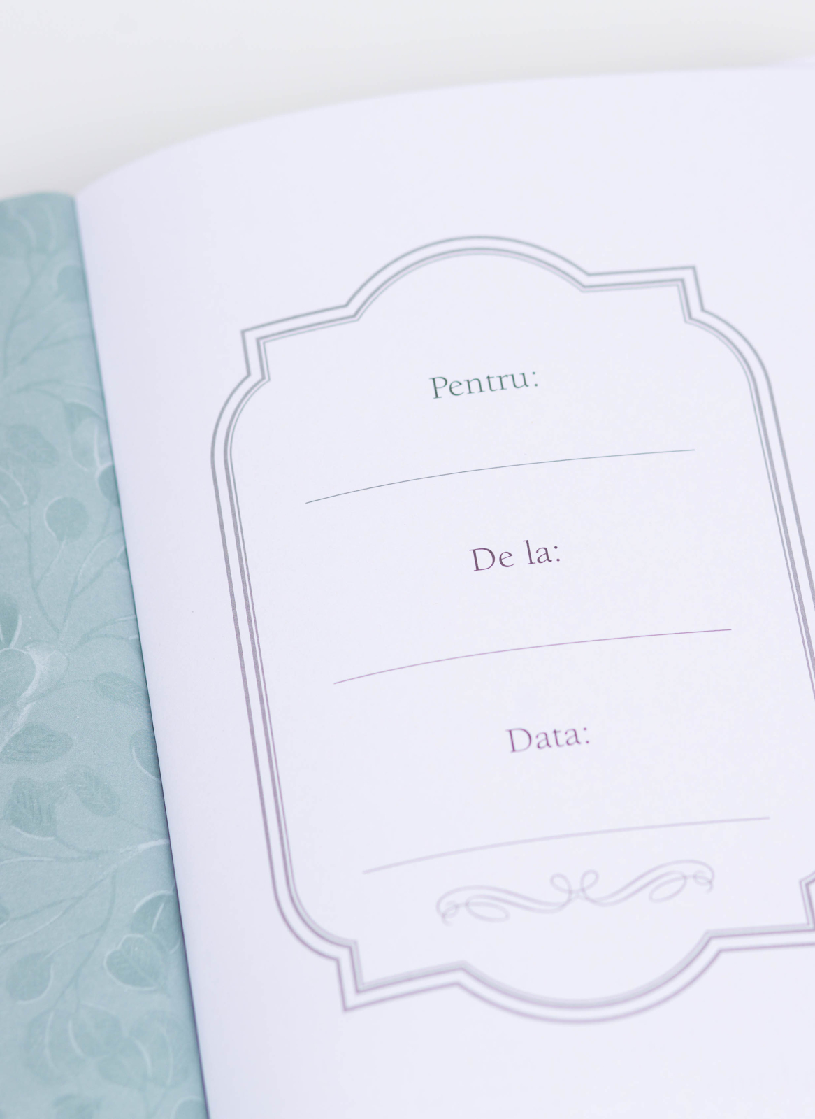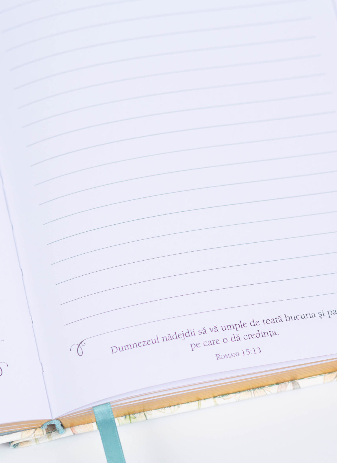 Jurnalul include versete biblice la baza fiecărei pagini, iar hârtia de înaltă calitate previne trecerea cernelei pe verso. De asemenea, semnul de carte din satin îți permite să găsești rapid pagina dorită.