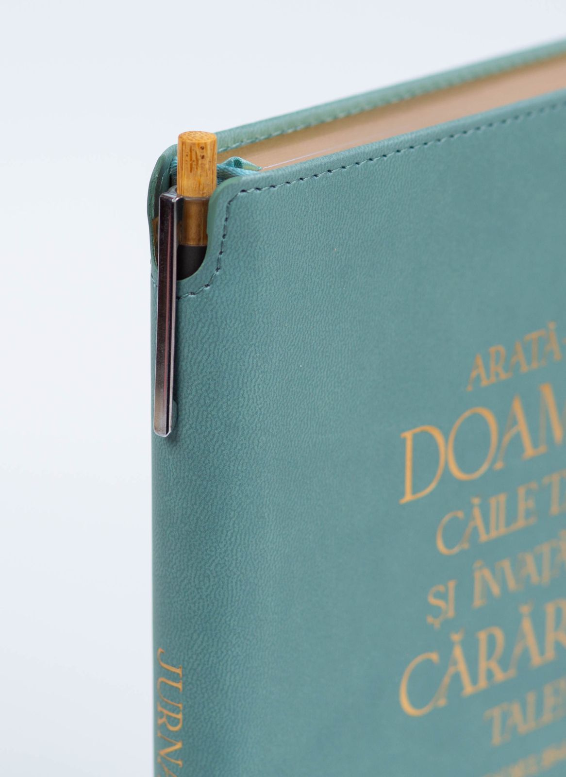 Îmbrăcat în piele ecologică, jurnalul are un aspect rafinat, fiind ideal pentru a te însoți în călătoria ta spirituală.