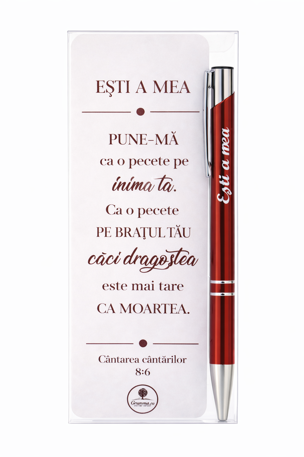 Text semn de carte: Pune-ma ca o pecete pe inima ta. Ca o pecete pe bratul tau caci dragostea este mai tare decat moartea (Cantarea cantarilor 8:6)