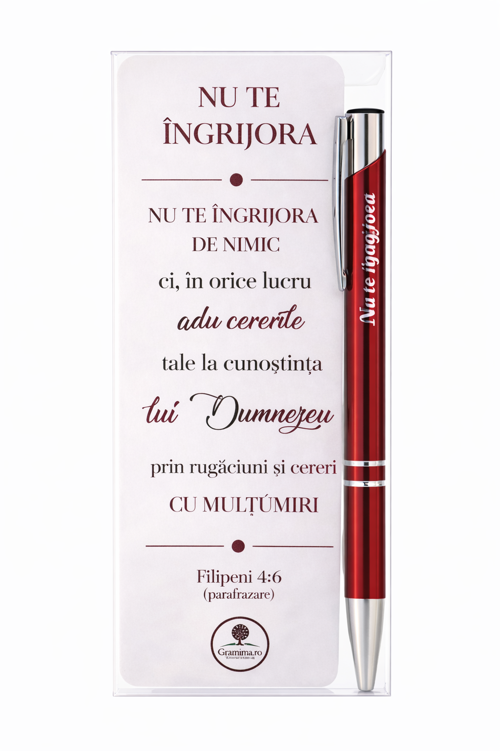 Text semn de carte: Nu te ingrijora de nimic ci, in orice lucru adu cererile tale la cunostinta lui Dumnezeu prin rugaciuni si cereri cu multumiri (Filimon 4)