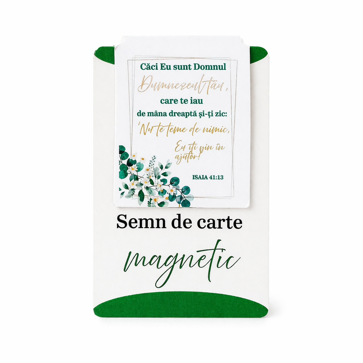 Acest semn de carte magnetic este un accesoriu potrivit pentru oricine dorește să păstreze aproape Cuvântul lui Dumnezeu. Este un mod simplu de a-ți marca lectura și de a-ți aminti zilnic: „Nu te teme de nimic, Eu îți vin în ajutor!”