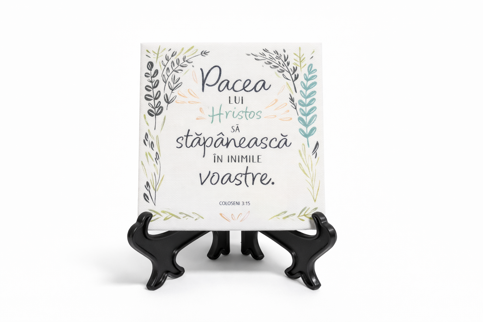 ✔️ Detalii de efect – Textul versetului este lacuit selectiv, obținând un aspect 3D elegant și rafinat, care pune în valoare mesajul biblic.